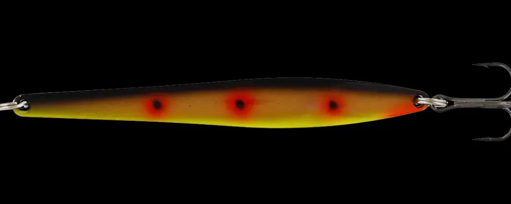 Dette blink imiterer en tobis og er god til at fange havørred og hornfisk.Den aerodynamiske form gør det ideelt til lange kast på kysten.Blinket er blyfrit, har splitringe i rustfrit stål og kemisk skærpet round bend trekrog.
