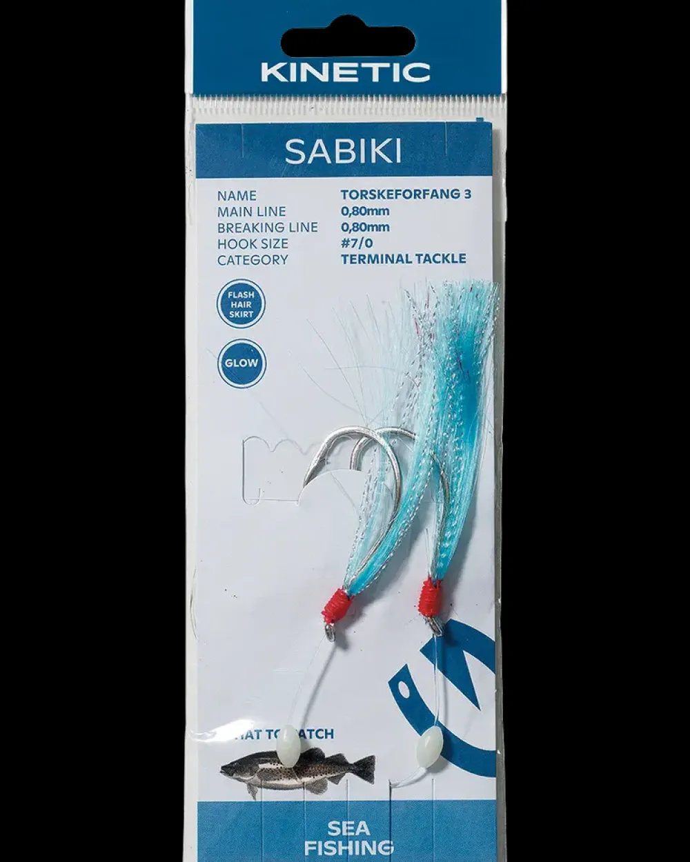 To medium størrelse kroge med fristende flashstrå bundet på et stærkt monorig – det sikre rig til pelagiske rovfisk.Kvalitets nylonlineKemisk skærpede kroge FlashstråTorsk og sejFarve: blå