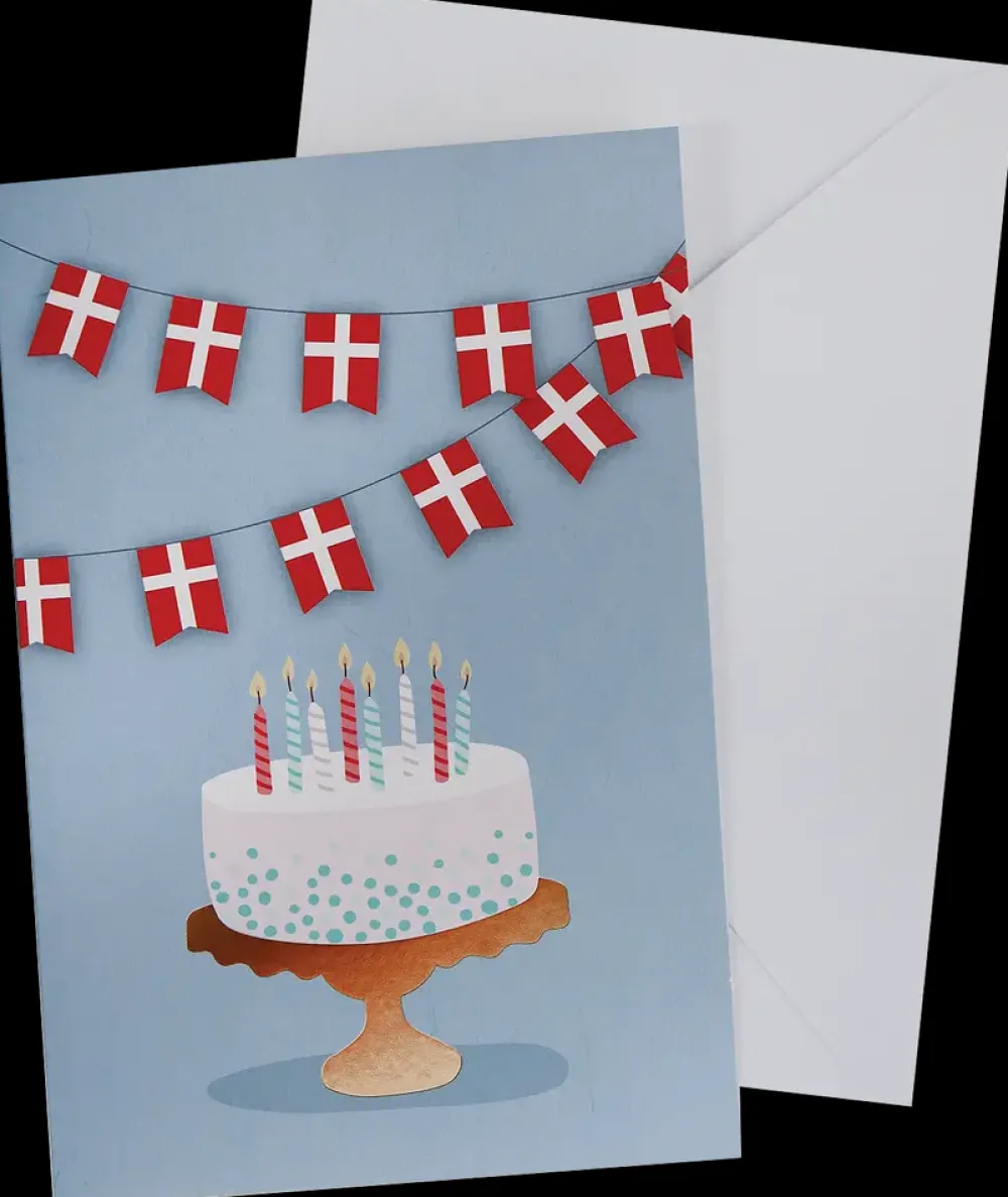 Kort med kuvert 11×17 cm – kage og flag| Festartikler