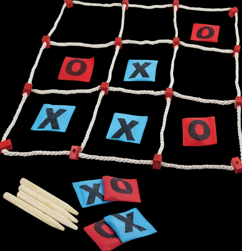 Sæt gang i legen, familiefødselsdagen eller vejfesten og kast dig til tre på stribe.Kryds og bolle sæt i størrelse XL. Spillepladen er 70×70 cm. Indeholder: 1 spilleplade, 10 kasteposer, 4 pinde og en pose til at opbevare spillet i når det ikke er i brug.