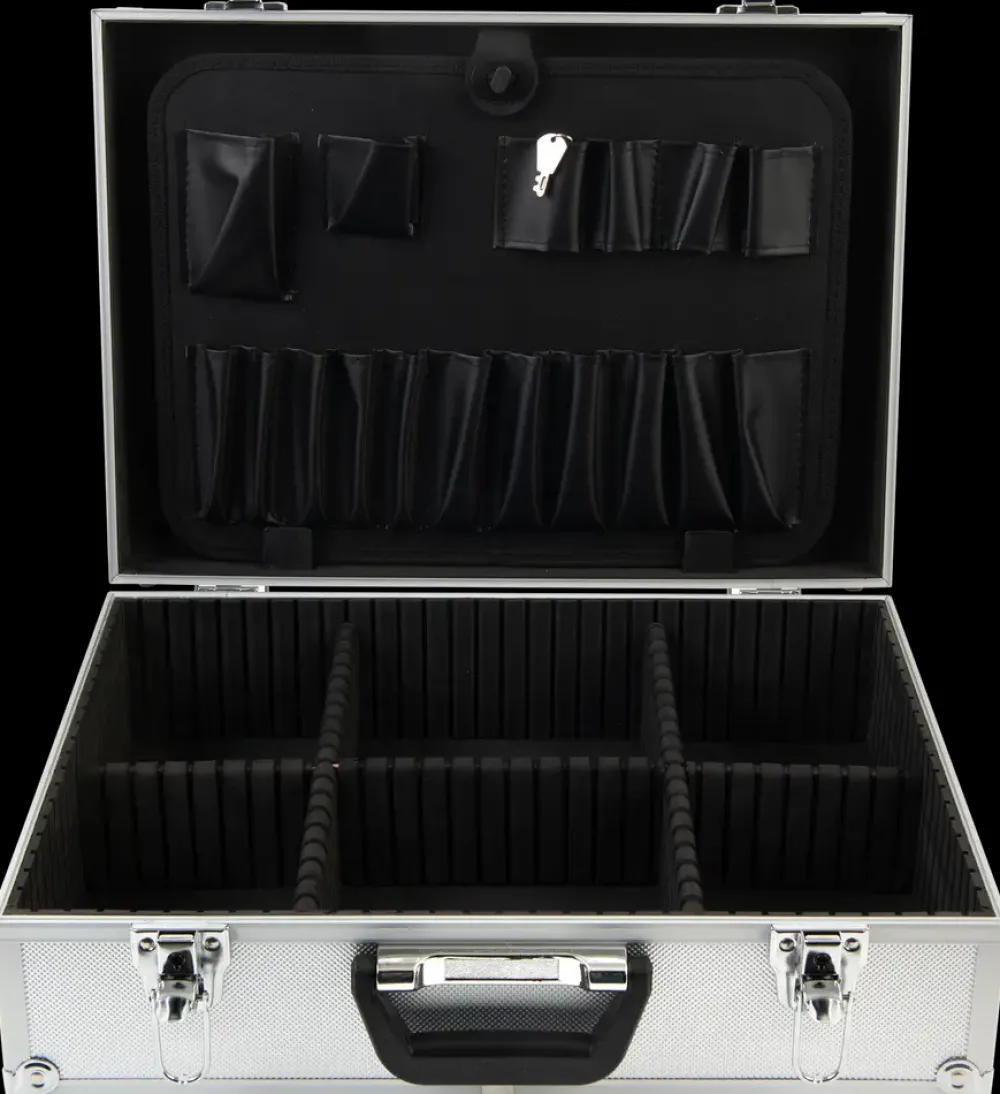 Denne universal kuffert i aluminium er perfekt til opbevaring af værktøj, fotoudstyr og meget mere. Den leveres med 5 justerbare skillevægge, så du kan organisere og beskytte dine genstande på den bedst mulige måde. Ligeledes er der 17 “værktøjsholdere” i låget.Kufferten måler 33 x 46 x 15 cm og er ideel til transport og opbevaring. Den er robust, holdbar og sikrer, at dine værdifulde genstande beskyttes mod stød og skader.Kufferten er monteret med 2 snaplåse.