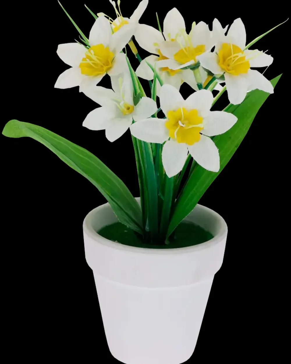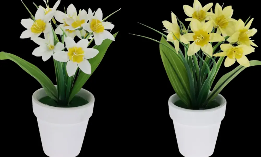 Skab en hyggelig forårsstemning med denne kunstige påskelilje i en stilren keramikpotte. Perfekt til påskedekorationer eller som et friskt pust i hjemmet – helt uden vanding eller pleje.Påskeliljen fås i to assorterede farver, gul og hvid, og har et naturtro udseende med fine detaljer i blomster og blade. Med en højde på 20 cm passer den godt på vindueskarme, hylder eller som en del af en større dekoration.Mål: H. 20 cm x Ø. 7 cmMateriale: Plastik og keramikBemærk: Variant kan ikke vælges ved køb i webshoppen.