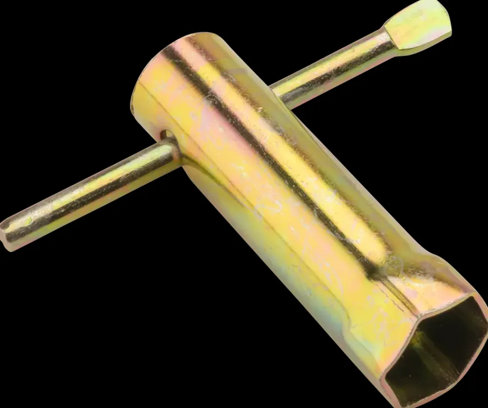 Lang top til parasolfod er et praktisk redskab, så stangen kan skrues fast i basen nedefra.Vend parasolfoden og stik røret ned i det lange hul, så det kan tage fat om en møtrik.Stik den lille stang ind i hullet øverst på røret – herved kan du stramme møtrikken.