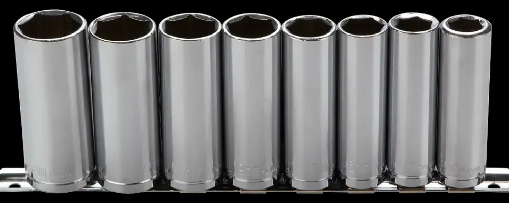 Lange toppe til motorreparationer.Tap: 1/2″.Str.: 13, 14, 16, 17, 19, 21, 22 og 24 mm.