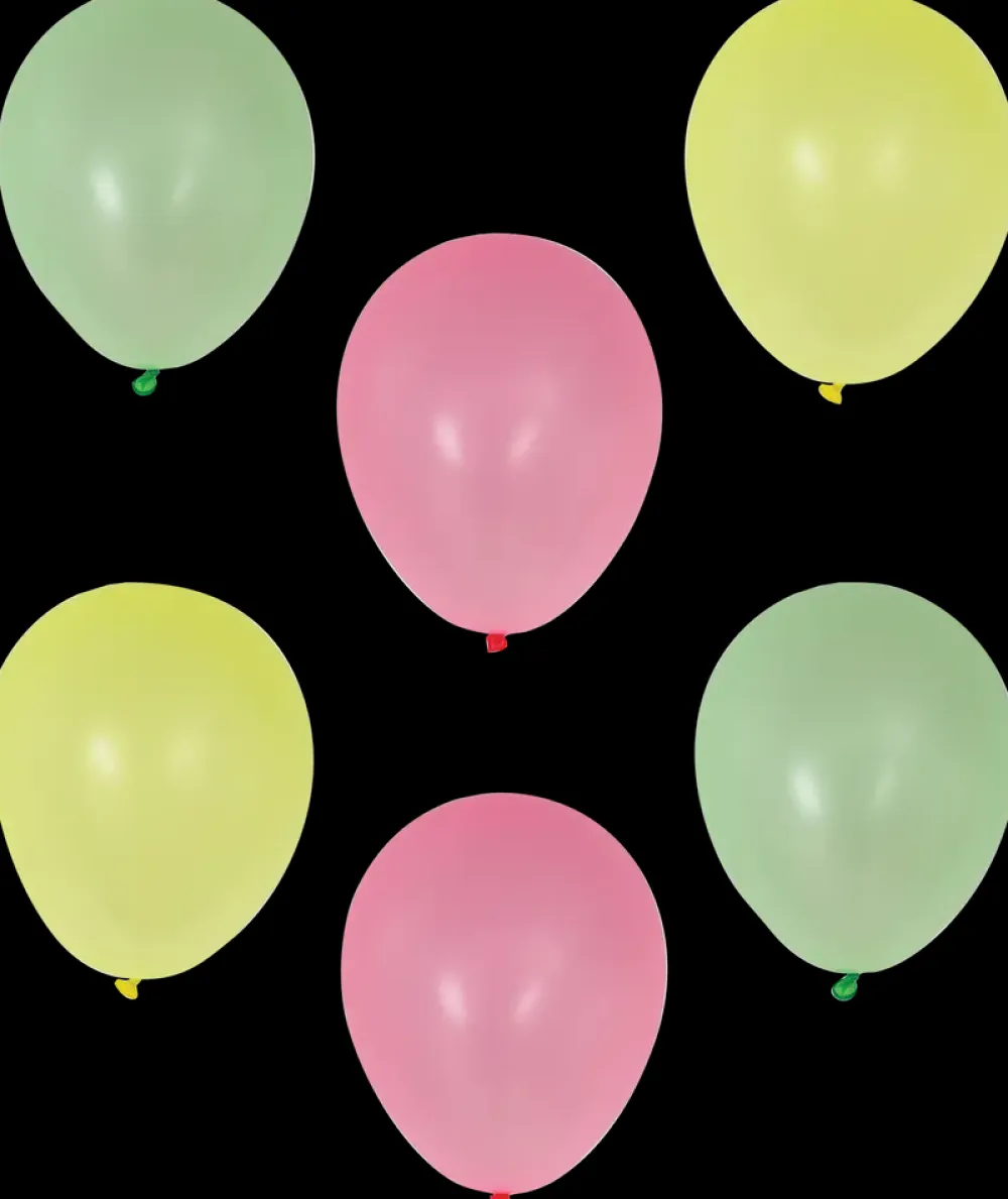 Få festen til at sprudle med disse farverige latexballoner! Denne pakke indeholder 6 stk. Ø30 cm balloner i neonfarver.