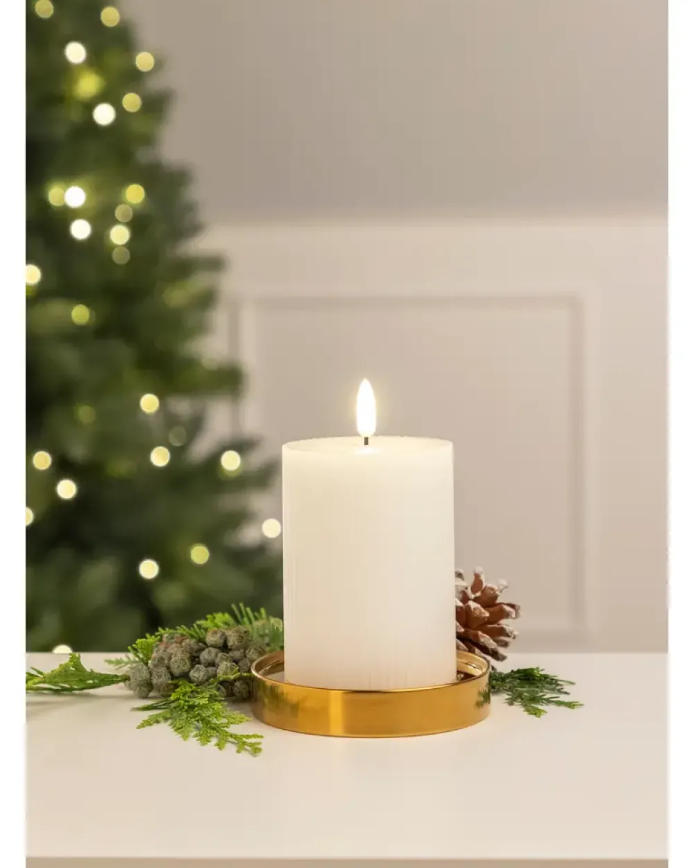 LED-vokslys rillet med timer – H. 10 cm| Lys Og Olielamper