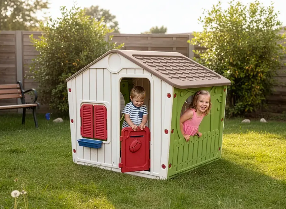 Legehus til børn med plads til rolleleg og aktiviteter udendørs i haven. Huset danner en ramme for leg som at lege hus, invitere til teselskab eller skabe egne legeuniverser. Flere åbninger og detaljer giver mulighed for interaktion under leg.Modellen har dør, vinduer med skodder samt åbninger, der gør det muligt at kigge ind og ud. Der er desuden elementer som blomsterkasser og poståbning, som kan indgå i legen. Indretningen giver plads til, at flere børn kan lege samtidig.Konstruktionen er udført i plast og egnet til udendørs brug. Materialet kræver begrænset vedligeholdelse og kan rengøres med vand efter behov. Huset er let at samle og kan flyttes efter placering i haven.Mål: H. 115,5 x B. 108 x L. 140 cmMateriale: PolypropylenFarve: Rød, grøn og brun