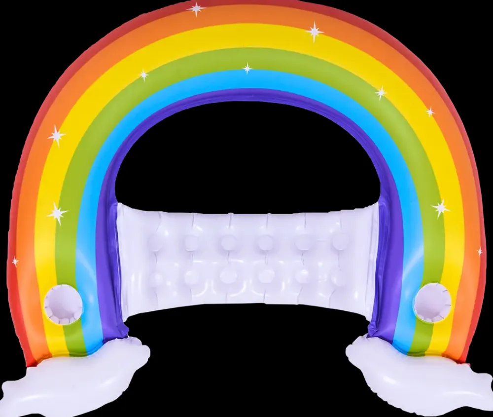 Smart lounge til brug i poolen – udformet som en regnbue og med to integrerede kopholdere. Loungen har to luftkamre for øget sikkerhed.