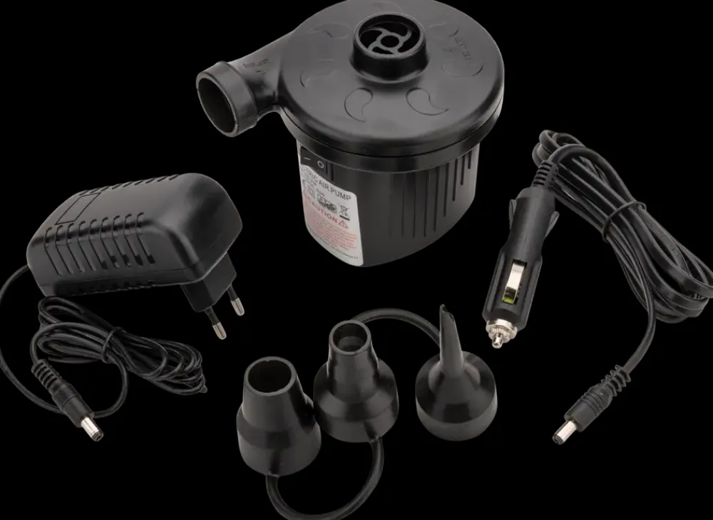 Elektrisk luftpumpe til hurtig oppustning af luftmadrasser, badedyr, gummibåde m.m.