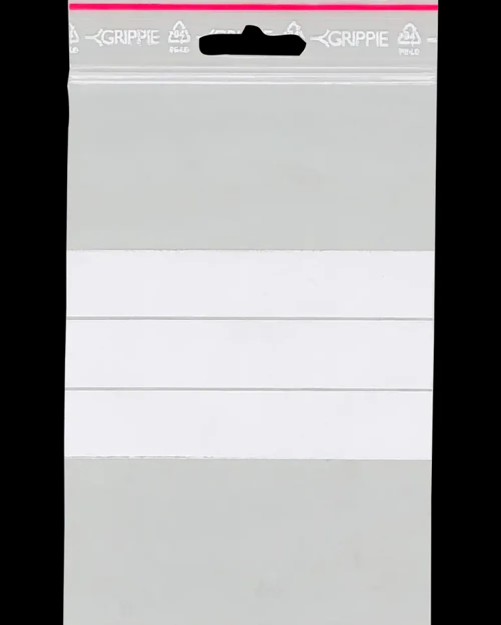 Lynlåspose til opbevaring af diverse små ting som skruer, knapper m.m.Kraftig “lynlås” med rød linjemarkering.Med eurohul til ophængning og 3 hvide skrivefelter.Materiale: LDPE.Mål: 100 x 150 mm (indermål).