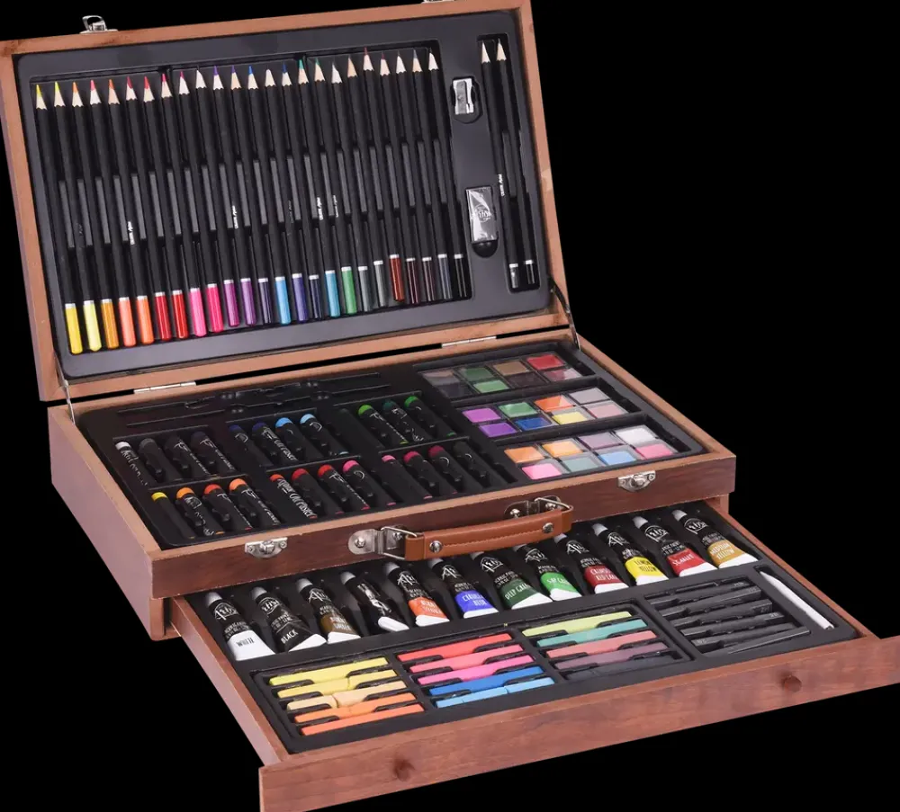 Male kunstnersæt i trækuffert 112 dele| Øvrige Hobbyartikler|Akrylmaling