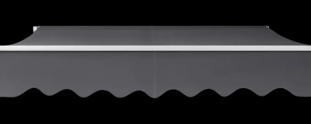 Manuel åben markise med hvidt stel og grå PU-coated polyesterdug.Markisen har et elegant og klassisk design og er nem at sætte op.Markisen har en bredde på 395 cm og et udfald på op til 250 cm.