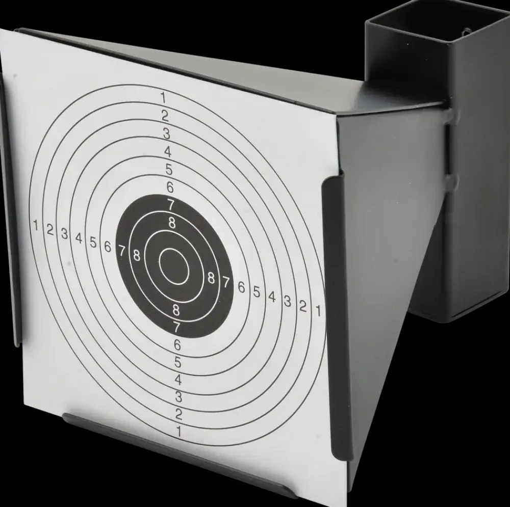 Skydekasse til skydeskiver.Skydekassen er magnetisk og har derfor mange placeringsmuligheder.Bruger 14 x 14 cm skydeskiver.