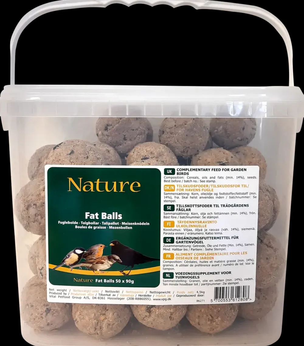 Fuglebolde er fedtkugler af god kvalitet. Den høje kvalitet af både fedt og frø sikrer, at fuglene i din have får alle de nødvendige kalorier og næringsstoffer. Vi anbefaler at anvende fuglebolde uden net, da nettet kan skade fuglene.Fuglefrøene er særligt udvalgte kvalitetsfrø, som bidrager til et rigt og varieret fugleliv i haven. Fuglefrøserien består af et varieret produktsortiment. For at tiltrække flest forskellige arter, anbefaler vi at fodringen omfatter forskellige frø og nøddeprodukter.Vi anbefaler, at du fodrer med fuglebolde hele året rundt.