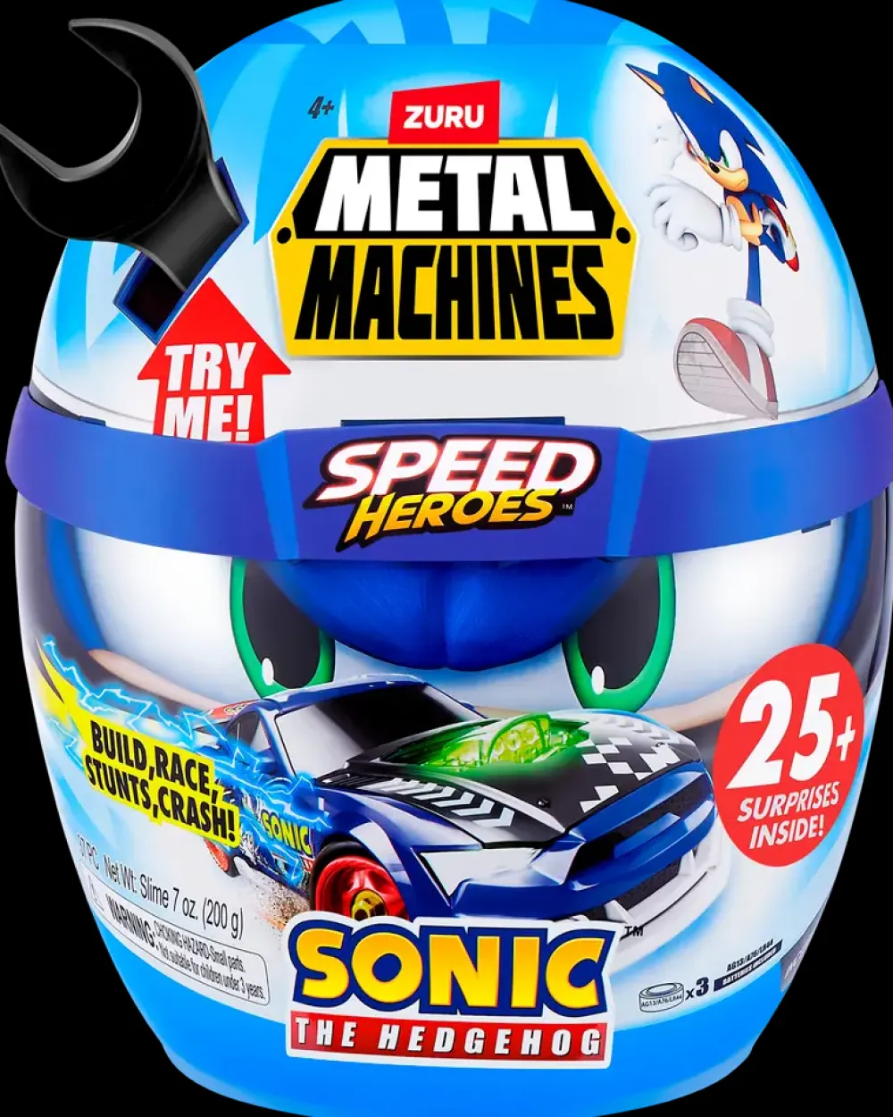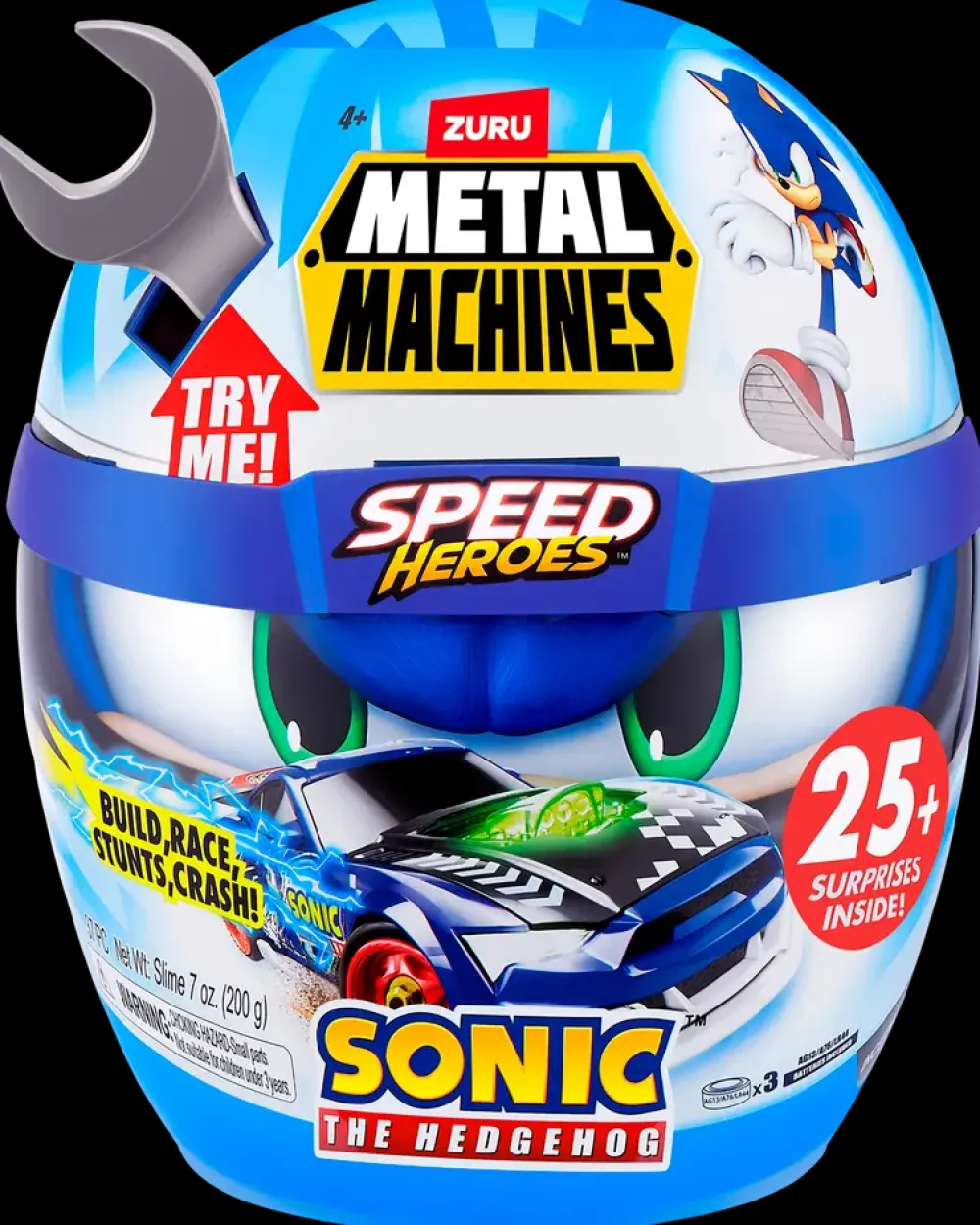 Oplev fart og sjov med Metal Machines Sonic The Hedgehog Speed Heroes! Åbn den seje Sonic-hjelm og find mere end 25 overraskelser indeni. Her gemmer sig alle delene til at bygge og tilpasse din egen racerbil inspireret af Sonic-universet. Med to forskellige bilkarosserier, klistermærker og udskiftelige dele kan du skabe flere unikke kombinationer og designe din helt egen bil.Når raceren er samlet, vækkes den til live med lys og motorlyde, der gør legen endnu mere realistisk. Du kan bygge, skille ad og samle igen for at eksperimentere med nye farver og udtryk. Serien indeholder flere modeller i forskellige farver – saml dem alle og lav dit eget Sonic-racerteam.Specifikationer:Farver: Flere farver (rød, blå, gul, hvid m.fl.)Materiale: 79,66% PP, 11,36% jern, 3,5% clear PP, 2,36% clear ABS, 1,68% ABS, 0,5% Fe₃O₄, 0,43% zinklegering, 0,18% MnO₂, 0,1% glasfiber, 0,1% silikone, 0,07% kobber, 0,05% PE, 0,01% TPUIndhold: 25+ overraskelser, 2 karosserier, klistermærker og deleBatterier: 3 x LR44 (inkl.)Anbefalet alder: Fra 4 årModel kan ikke vælges ved køb i webshoppen.