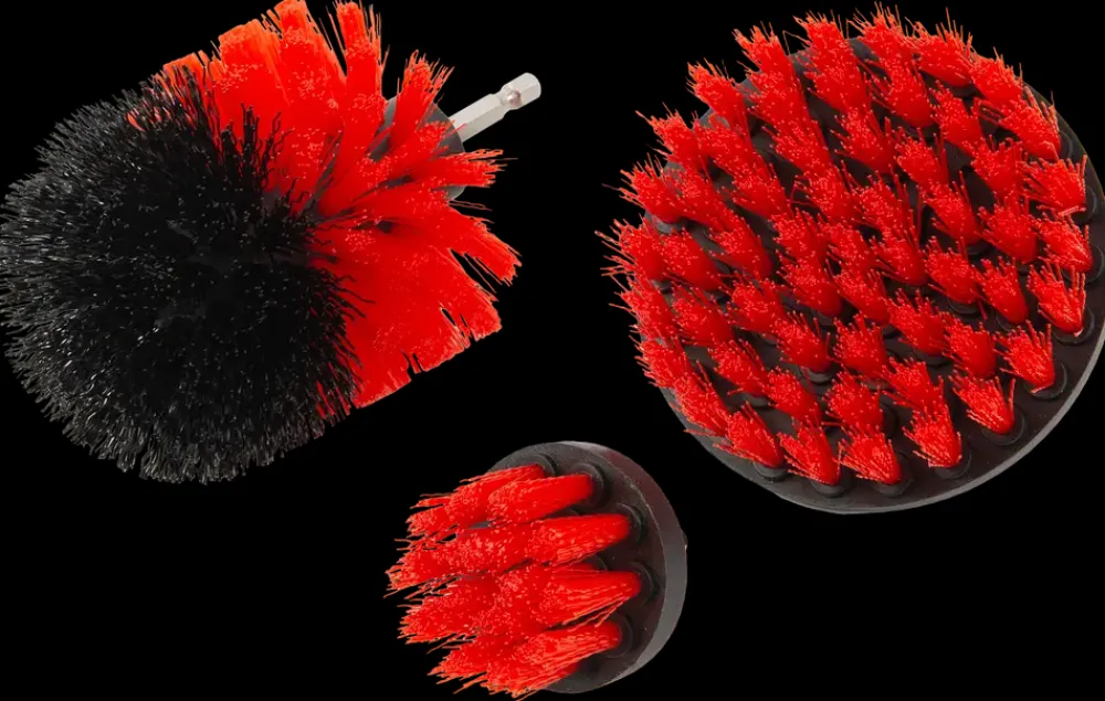 3 stk. børster til boremaskine.Rengør og poler f.eks. fælge, fliser, og håndvask.Børsterne er af nylon og ridser ikke.Test altid produktet på et ikke-synligt sted inden brug.Mål:1 x Ø5 cm.1 x Ø8,5 cm (kegle).1 x Ø10 cm.