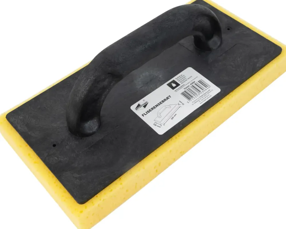 Fliserensebræt til rengøring og afvaskning af fliser og klinker efter opsætning.Udstyret med 30 mm tyk opskåret svamp, der effektivt fjerner overskydende fugemasse og efterlader overfladen ren.Svampen absorberer og holder på vand og sæbe, hvilket gør rengøringen lettere og mindsker behovet for hyppig genopfyldning.