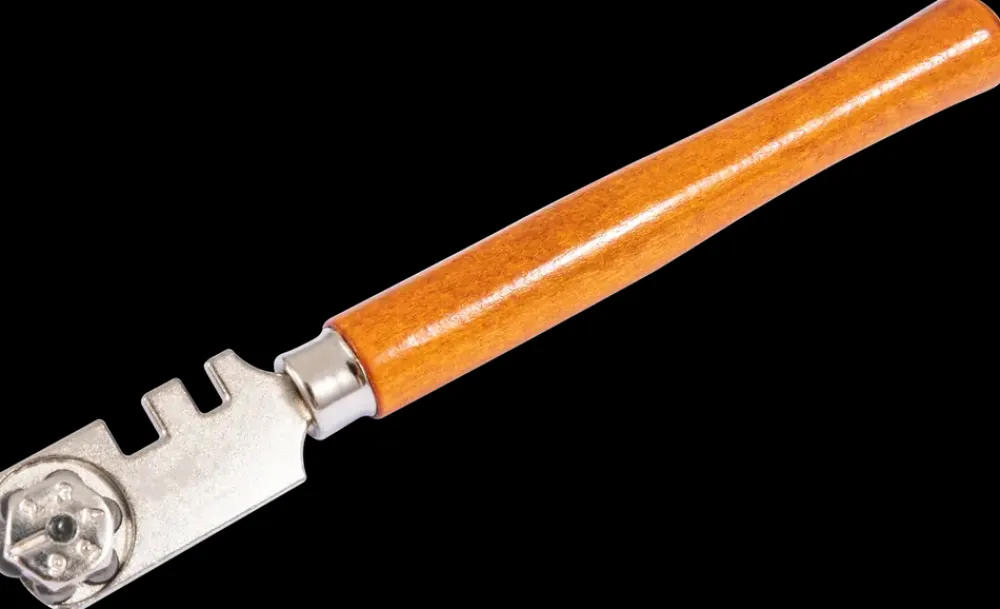 Glasskærer fra Mitsutomo med træskaft og stålhjul, nem at håndtere.Velegnet til skæring af vinduesglas, drivhusglas m.m.