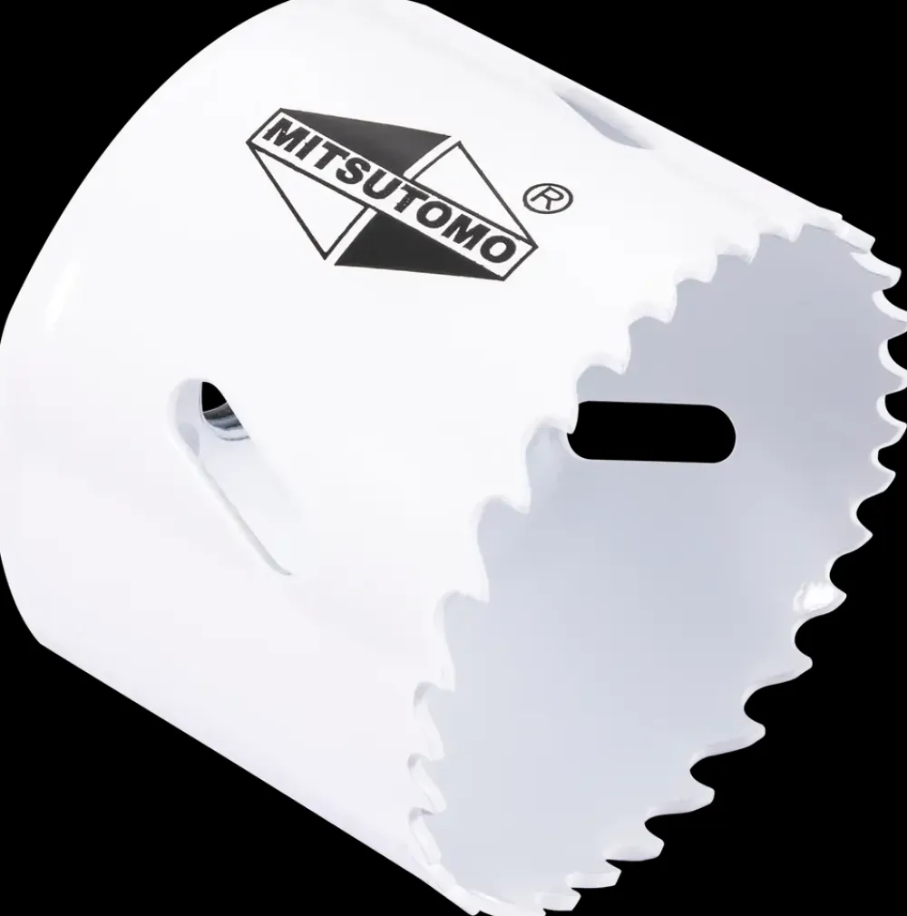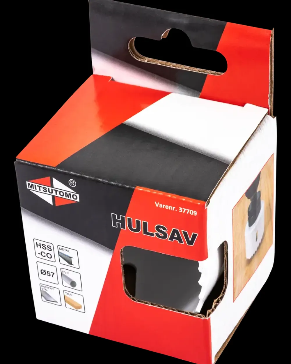 Hulsav fra Mitsutomo. Professionel håndværkerhulsav lavet af HSS Bi-metal M42 stål med 8% kobolt.Hulsaven sættes på en hulsavsholder og bruges med en batteri boremaskine, stationær bormaskine eller drejebænk.Den kan skærer i gipsplader, træ, lamineret træ, spånplader, kunststofplader, PVC, metaller, og er særdeles god til rustfrit stål.Skæredybde: 38 mm