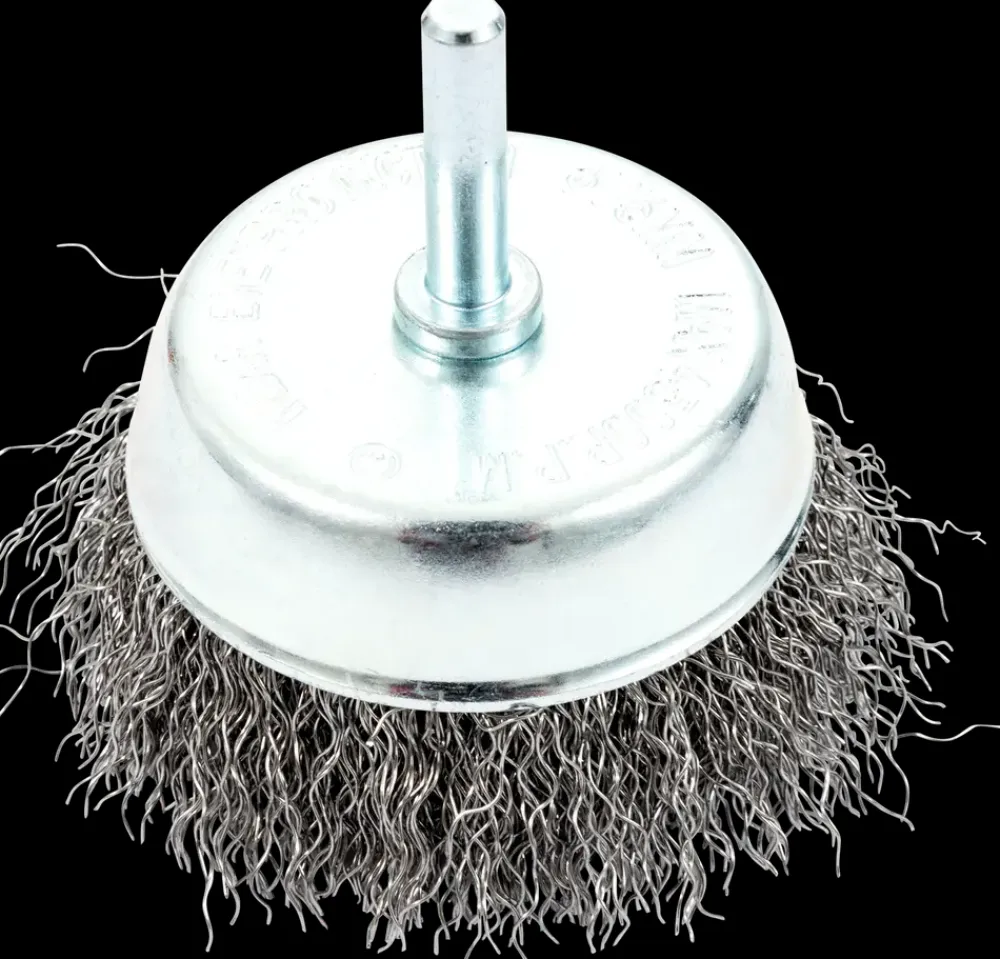 Kopbørste med bølget ståltråd til lettere rengøringsarbejde og overfladebehandling.Børsten er velegnet til fjernelse af rust, maling og lignende på metal og andre hårde genstande.Tallerkenbørsten passer på bore/skruemaskiner.Skaft: Ø6 mm.