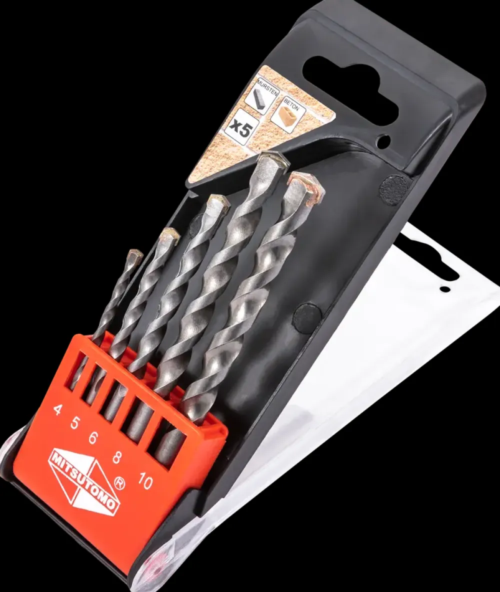 Murborsæt med 5 dele fra Mitsutomo kommer i en praktisk holder.Sættet indeholder populære størrelser og er med carbidspids, som sikrer lang levetid.Murborsættet er egnet til sten, mur og beton.Sættet indeholder følgende størrelser: Ø4, 5, 6, 8 og 10 mm.