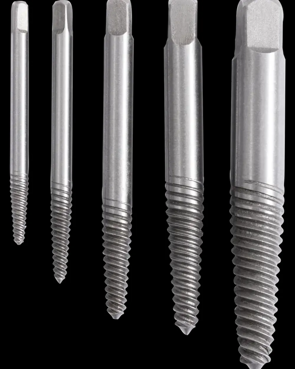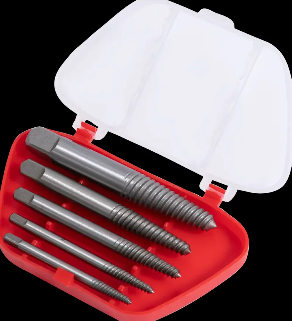 Mitsutomo skrueudtrækkersæt med 5 skrueudtrækkere.Bruges til at skrue knækkede skruer og bolte ud.Fremstillet i carbonstål.Passer til skruer med størrelse: 3-6 mm6-8 mm8-12 mm12-14 mm14-18 mmHårdhed: HRC-55.Materiale: GCR15 Carbonstål.
