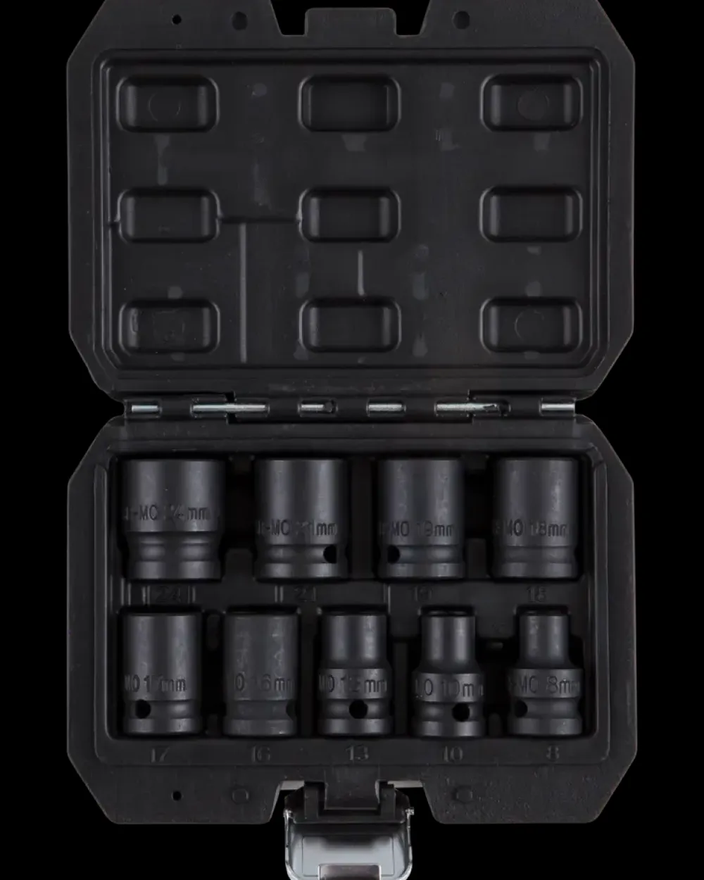 Slagtoppesættet fra Mitsutomo er velegnet til brug med slagnøgle eller momentnøgle ved arbejde med bolte og møtrikker. Sættet dækker et bredt spænd af størrelser og er målrettet opgaver, hvor der kræves høj styrke og præcis pasform.Hver top har en sekskantet (HEX) udformning, som sikrer effektiv kraftoverførsel og minimerer risiko for at beskadige bolthoveder. Toppene har gennemgående hul til låsering og er placeret i en robust opbevaringsæske, der gør det let at holde styr på størrelserne.Sættet består af 9 toppe i forskellige dimensioner og passer til værktøj med 1/2″ firkantdrev.Tekniske detaljer og mål:Størrelser: 8 mm, 10 mm, 13 mm, 16 mm, 17 mm, 18 mm, 19 mm, 21 mm, 24 mmDrevtilslutning: 1/2″ firkantTopform: HEXAntal dele: 9Opbevaringskasse medfølger