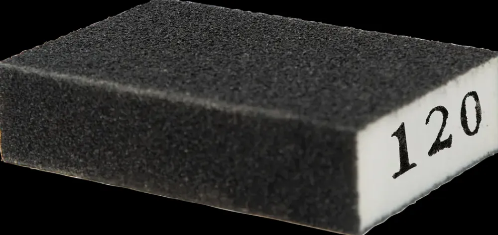 Slibeblok fra Mitsutomo, som er god til slibning af stole og bordben samt steder med svær tilgængelighed.Formen på blokken gør det behageligt at slibe større overflader.Kornene på slibesvampen er af aluminiumoxid, som kan bruges på mange overflader og gør slibeblokken velegnet til slibning af træ, maling, lak, spartelmasse og metal.Korn 120 bruges til fin slibning.