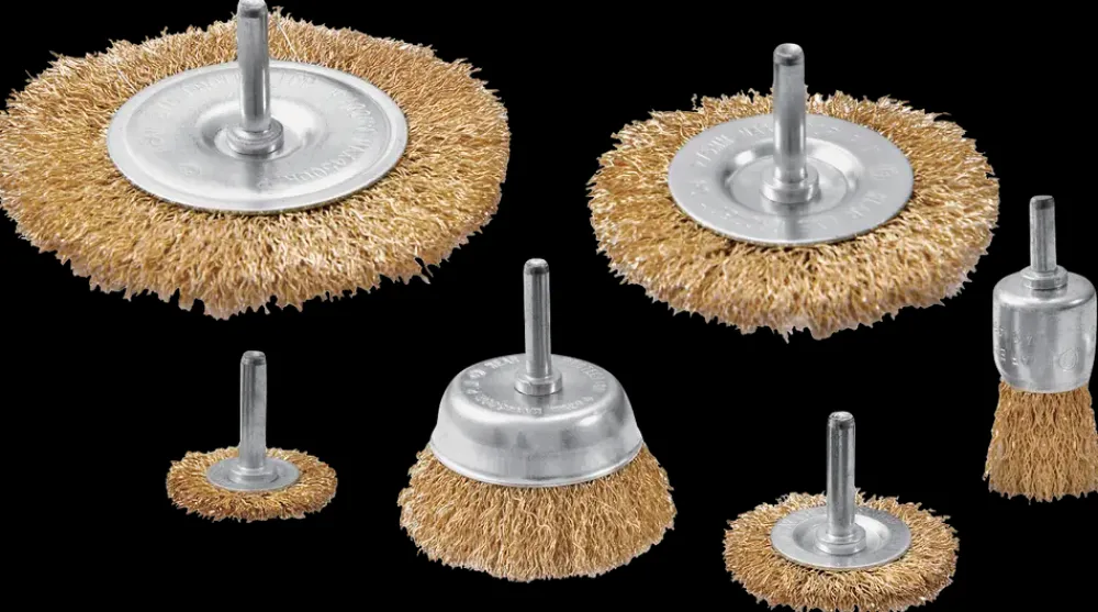 Tallerken og kopbørster med bølget ståltråd til lettere rengøringsarbejde og overfladebehandling.Børsterne er velegnede til fjernelse af rust, maling og lign. på metal og andre hårde genstande.Børsterne passer på bore/skrue maskiner.Sættet består af:1 stk. Ø25mm1 stk. Ø35mm1 stk. Ø50mm1 stk. Ø63mm1 stk. Ø75mm1 stk. Ø100mmSkaft: Ø6mm.