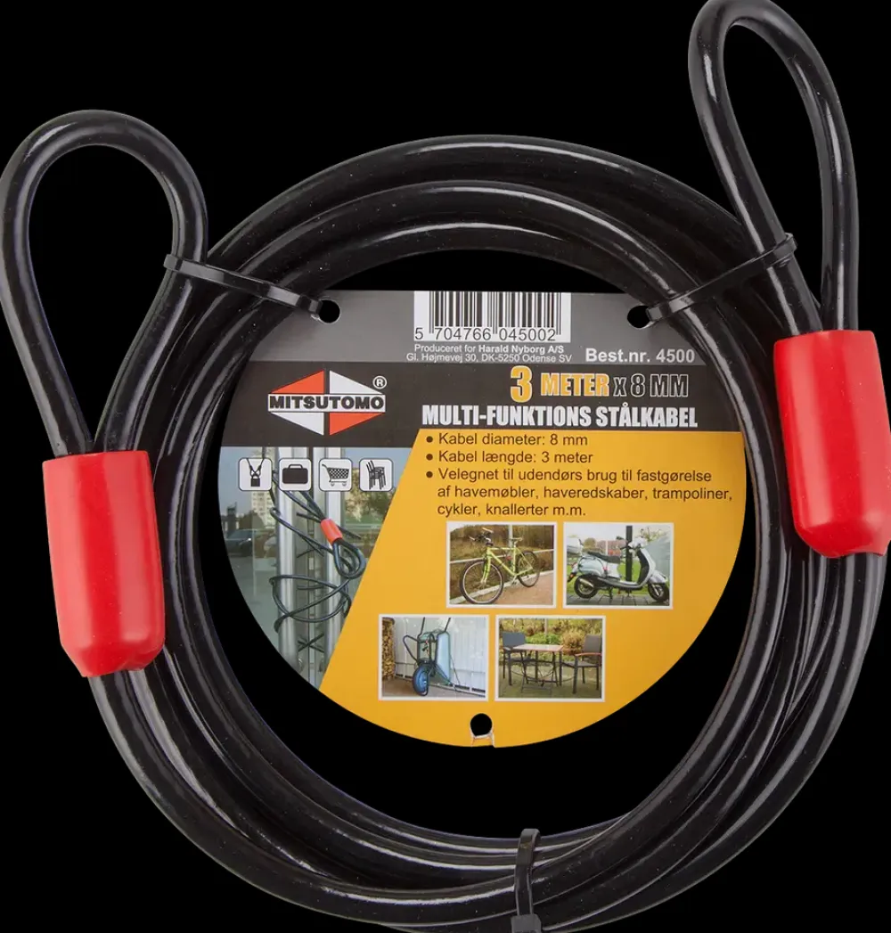 Mitsutomo Stålkabel Ø8 mm 3 meter| Hængelåse