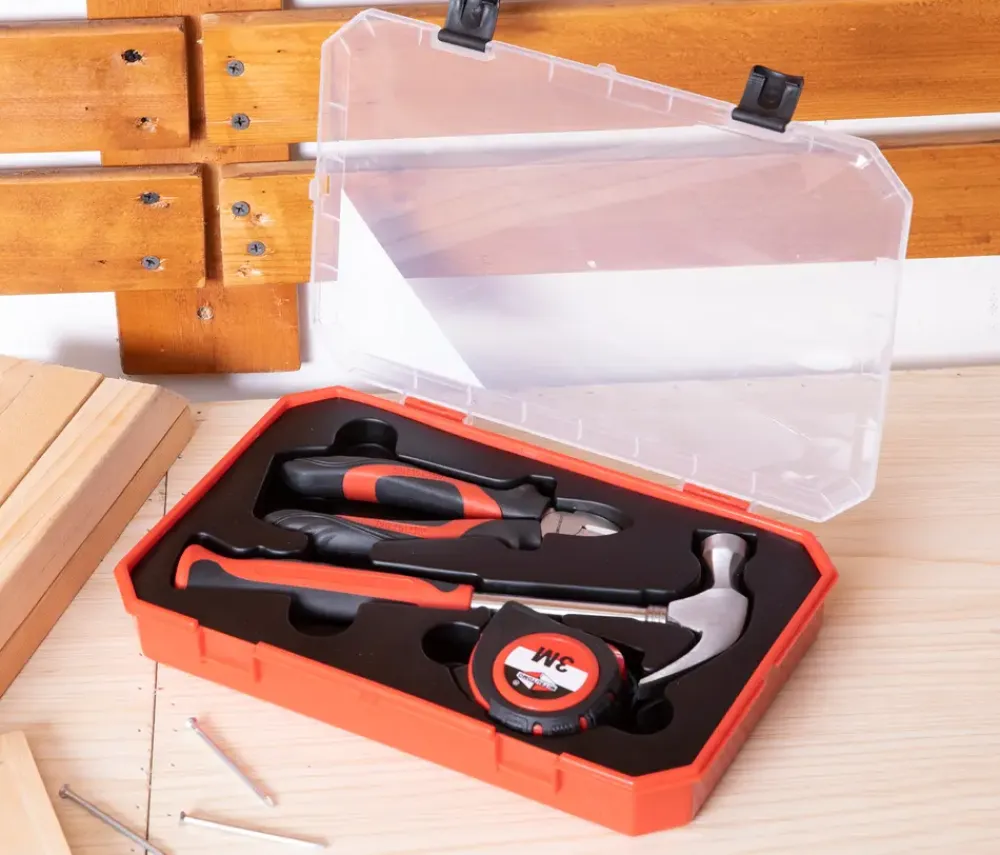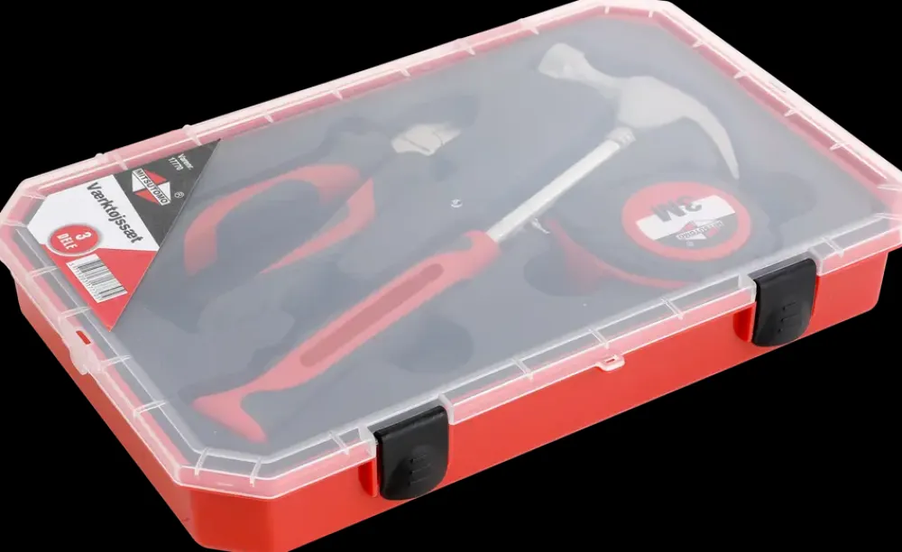 Praktisk værktøjssæt med 3 dele fra Mitsutomo. Håndtagene er med soft-grip og lavet af skridsikre materialer, som giver et sikkert greb. Værktøjet har lang levetid ved normal brug. Der medfølger opbevaringsæske.Indeholder:1 stk. kløfthammer 225 g.1 stk. 3 m målebånd.1 stk. 6″ bidetang.