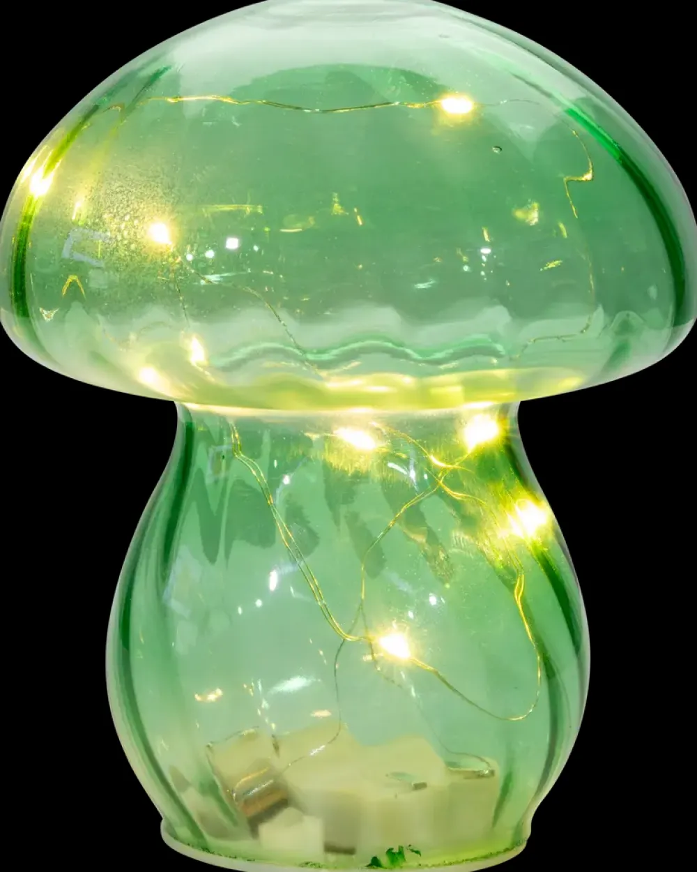 Mushroom bordlampe i glas med indbygget lyskæde bestående af 8 LED-pærer. Lampen skaber en hyggelig belysning og fungerer som både pyntegenstand og praktisk lyskilde i hjemmet. Batteridriften gør det muligt at placere lampen fleksibelt uden behov for en stikkontakt.Farve kan ikke vælges ved køb i webshoppen.