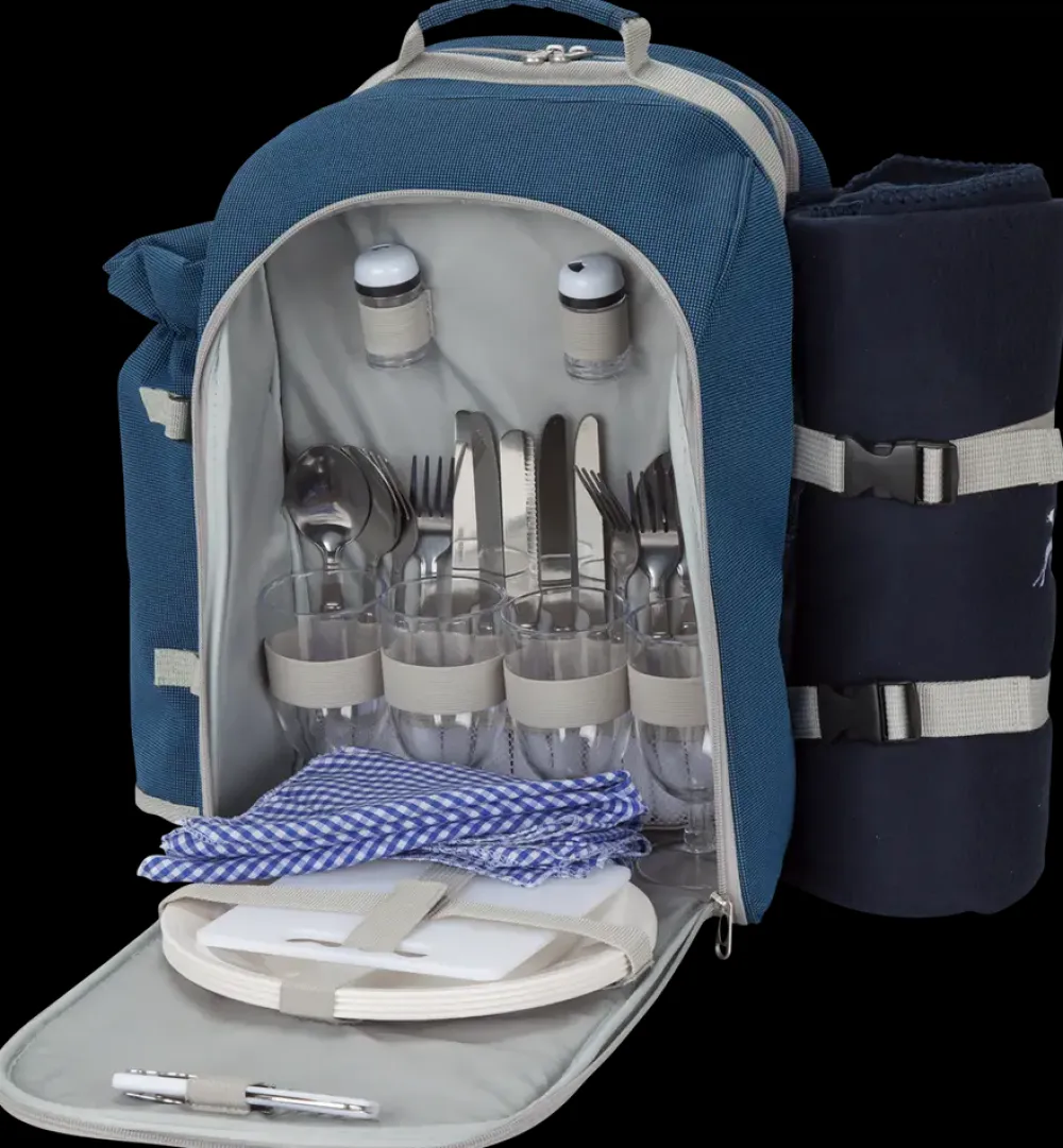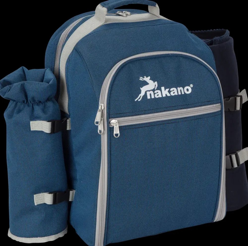 Praktisk taske fra Nakano med justérbare skulderstropper.Tasken har 3 rum:• Isoleret rum til opbevaring af mad.• Til opbevaring af service.• Rum til opbevaring af f.eks. nøgler, pung m.m.Tasken har endvidere en isoleret, aftagelig holder til opbevaring af kolde/varme drikke.Tasken er udstyret med en masse tilbehør som hører sig til på picnicturen:Fleecetæppe: 133 x 143 cm.Service til 4 personer inkl. stofservietterSkærebræt, brødkniv, proptrækker, samt salt- og pebersæt.