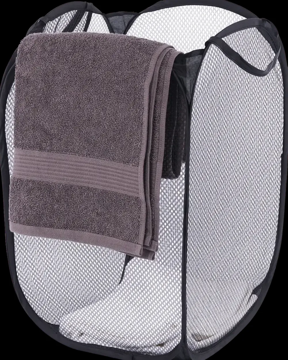Smart og praktisk foldbar vasketøjskurv. Perfekt til campingbrug.Materialer: Polyesternet og stålwire.Mål sammenfoldet: H. 3,5 x Ø. 18 cm.