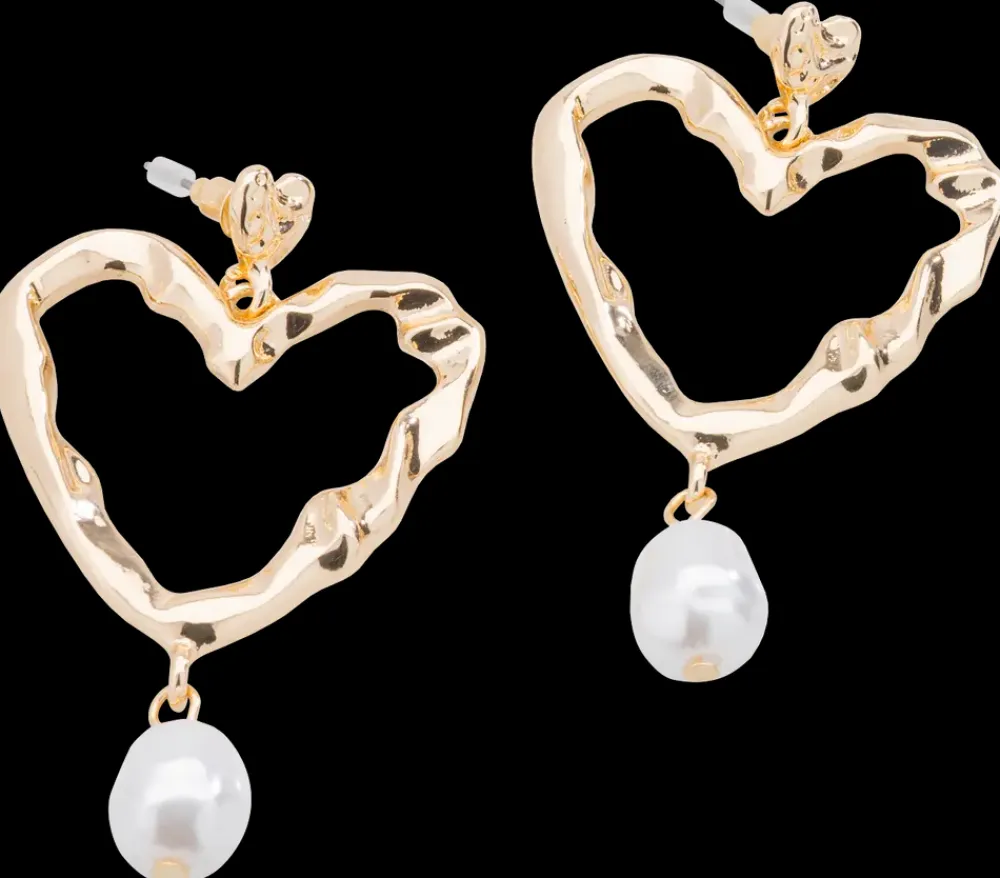 Øreringe hjerte og perle – guld| Smykker & Hårpynt
