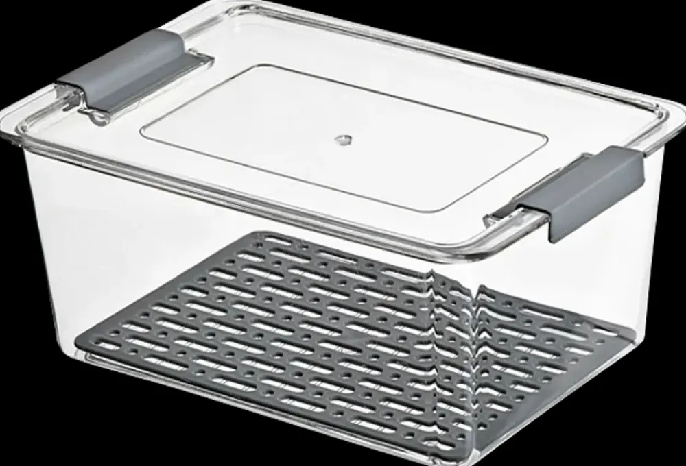 Skab let overblik over madvarerne i køleskabet med denne gennemsigtige organizer til køleskabet.Boksen er med håndtag og låg, og kan derfor nemt stables.Det smarte underlag opsamler kondens fra dine fødevarer og forlænger holdbarheden.Køleskabsboksen kan også bruges til opbevaring på kontor, badeværelse osv. – mulighederne er mange.Skal vaskes i hånden.