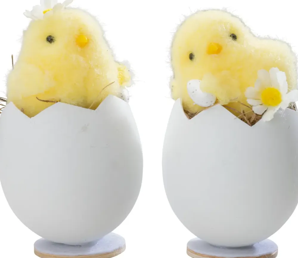 Påskekylling Æggeskal H. 10 cm 2-pak| Dekoration