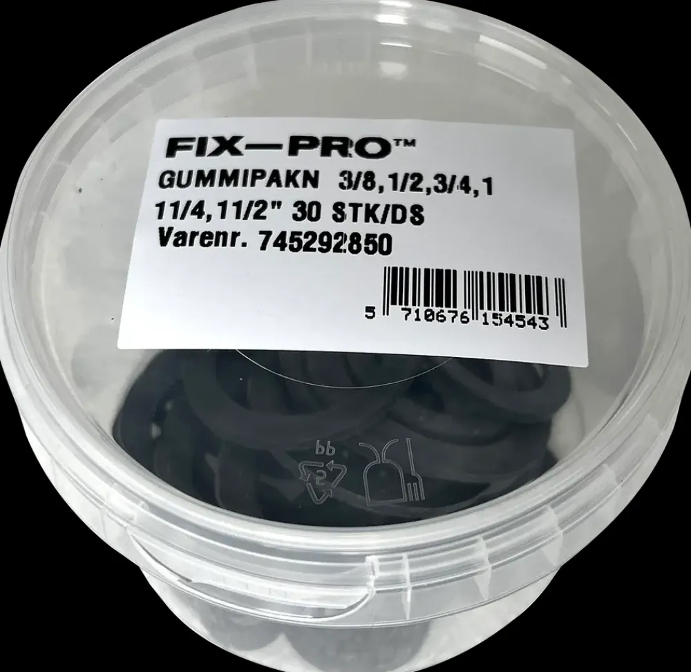 Pakningssortiment med gummipakninger.Antal: 30 stk.Mål: 3/8″, 1/2″, 3/4″, 1″, 1 1/4″, 1 1/2”.