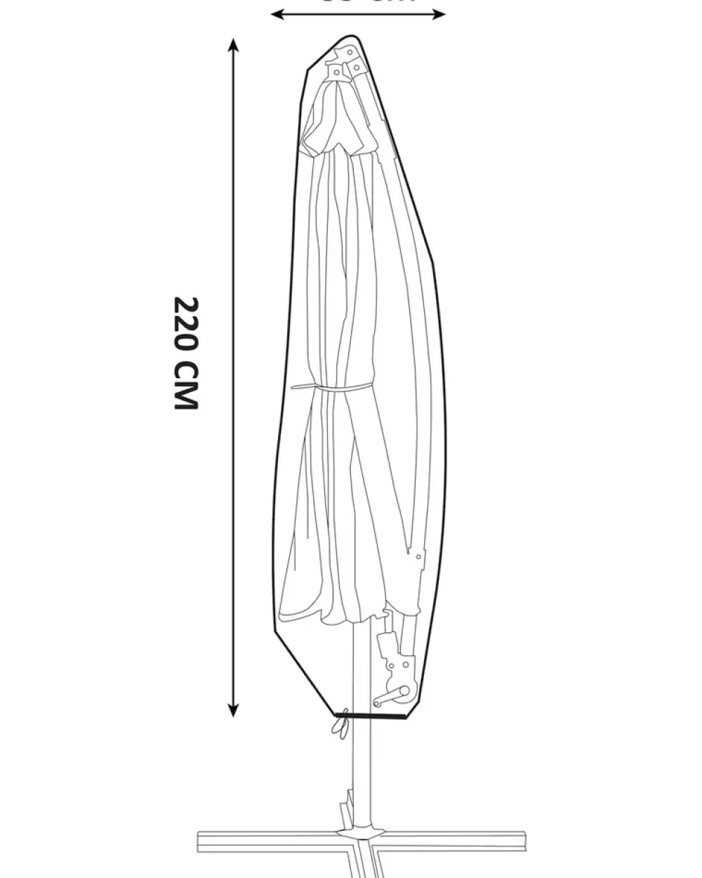Overtrækket bruges til at beskytte en sammenslået hængeparasol mod regn, støv og sollys. Det er fremstillet af 280gsm Oxford-stof med PU-belægning og passer til hængeparasoller og Rome-parasoller med en diameter på op til 3 meter.Overtrækket måler L.220 cm og har en diameter på 55 cm. Det lægger sig tæt omkring parasollen under opbevaring og har alu-øjer, som giver ventilation. Overfladen er ensartet og følger parasollens form. Rengøres med en fugtig klud og skal være helt tørt før opbevaring.