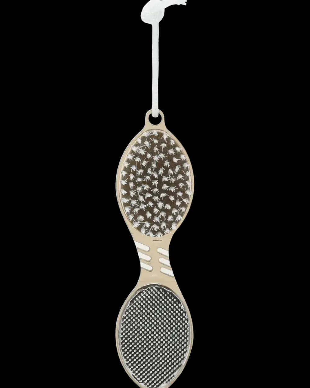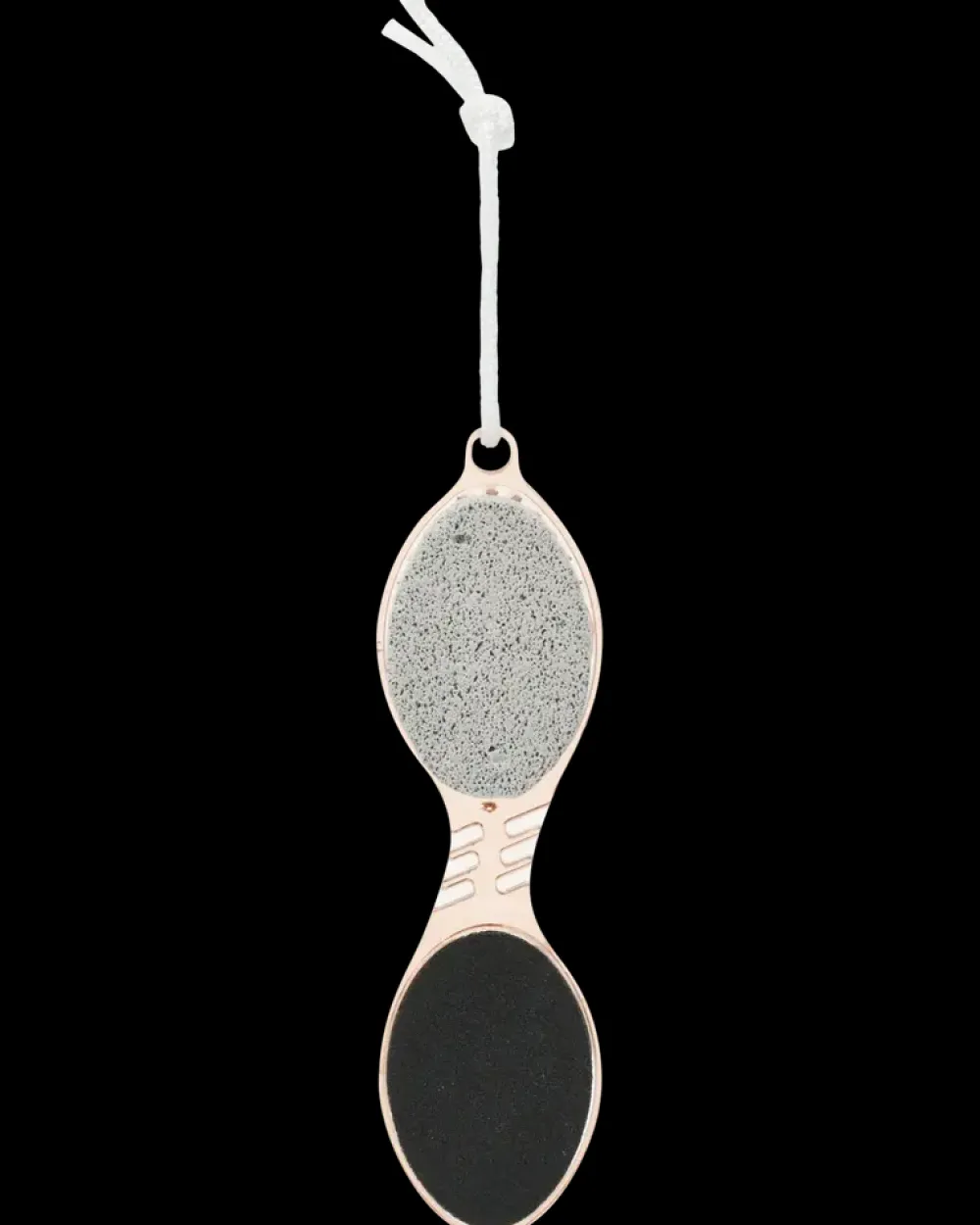 Kombineret fodfil med fire funktioner samlet i ét redskab: børste til rengøring af fødder, pimpsten til fjernelse af hård hud, samt fil og skrubber til udglatning af ru områder. Redskabet har et plastgreb, der sikrer et godt og stabilt hold under brug. Udstyret med snor til ophæng og tørring efter brug.Velegnet til daglig fodpleje og pedicure i hjemmet.Farve kan ikke vælges ved køb i webshoppen.