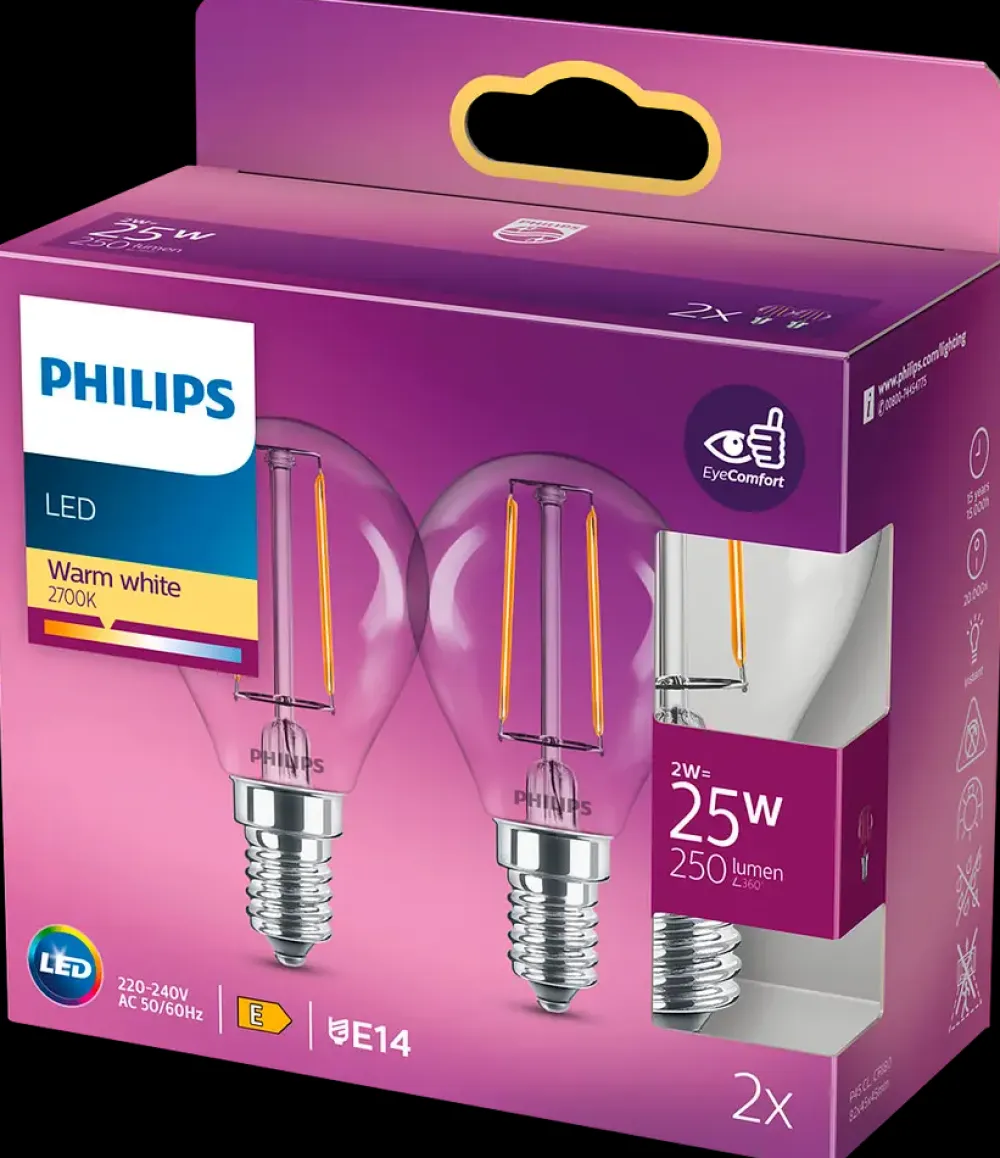 PHILIPS LED-filamentpære 2W E14 2-pak| Led-Pærer