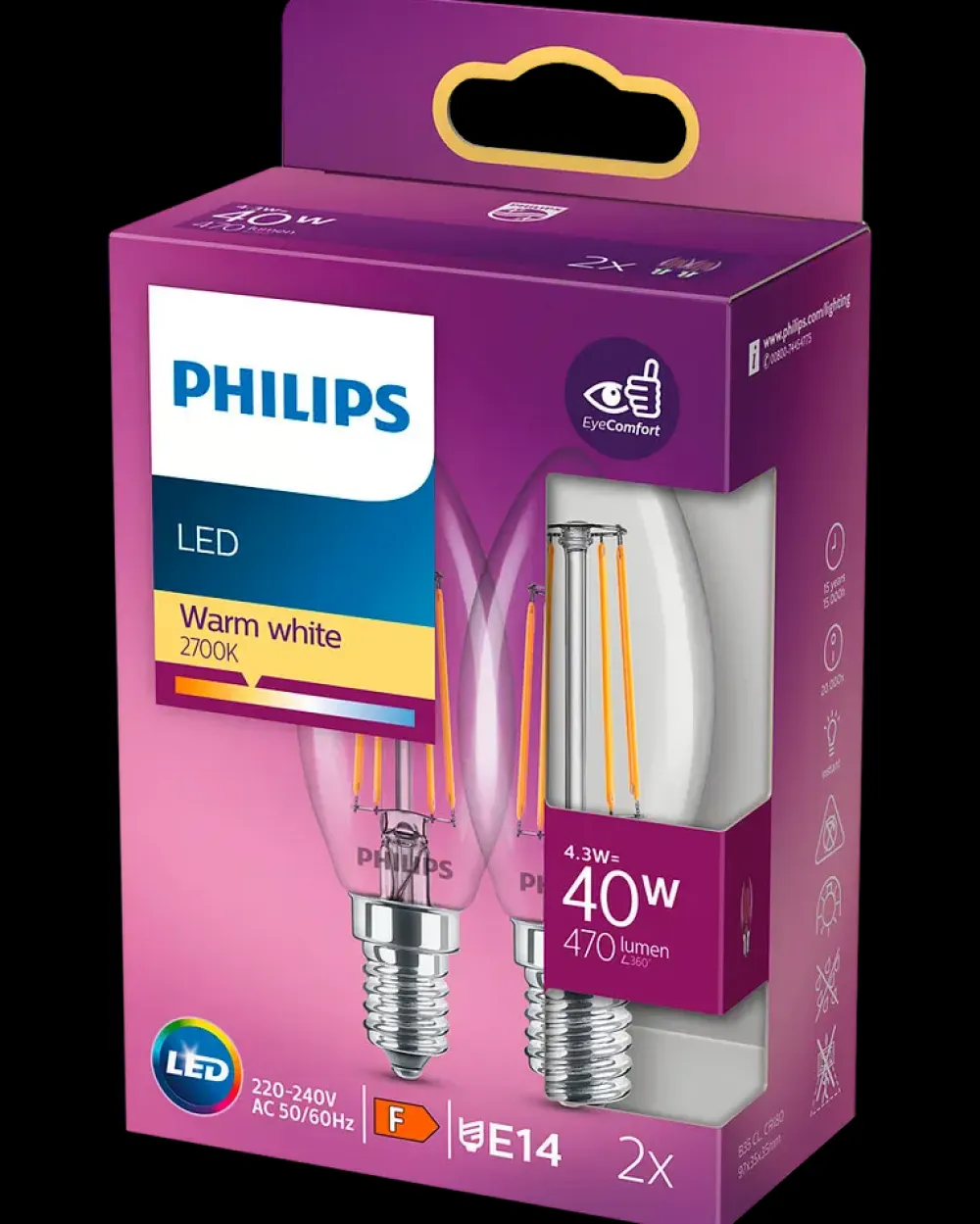 PHILIPS LED-filamentpære 4,3W E14 2-pak| Led-Pærer