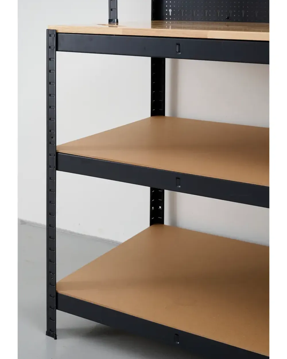 - Med værktøjsvæg og hylder