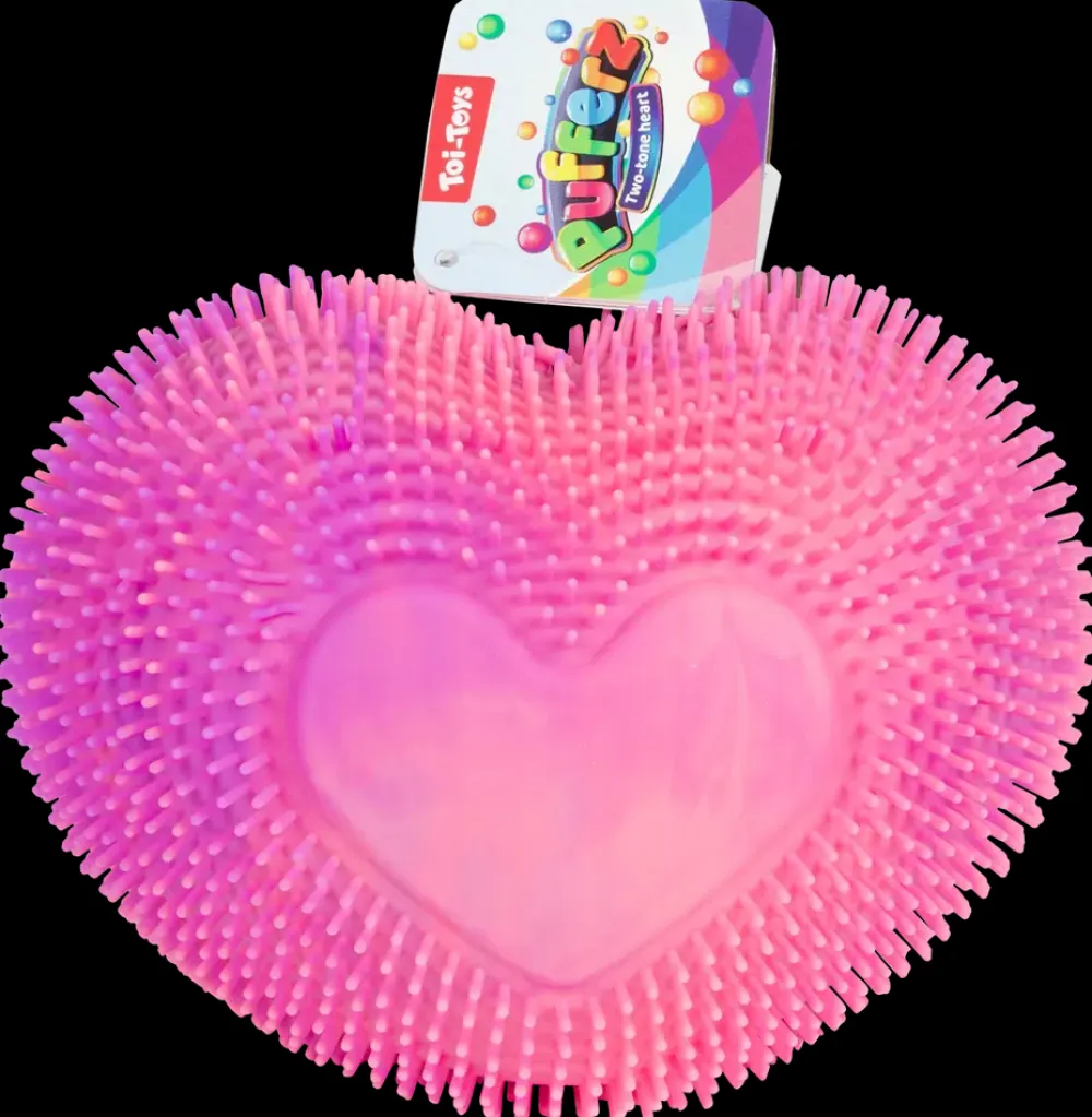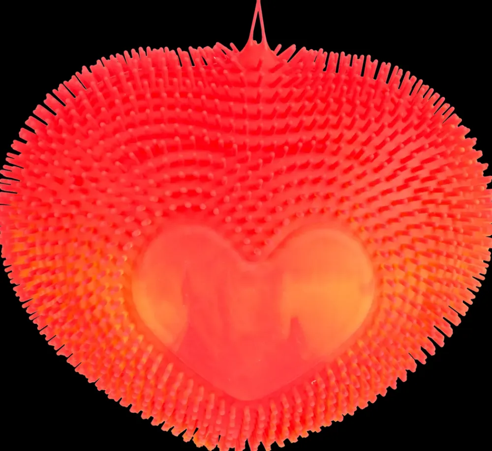 Blødt og strækbart puffer-hjerte med en diameter på 19 cm. Når du klemmer eller trykker på det, fyldes det automatisk med luft og vender langsomt tilbage til sin oprindelige form.Et sjovt og farverigt legetøj, perfekt til leg eller som stressafleder. Fremstillet i et fleksibelt materiale, der gør det behageligt at røre ved.Bemærk, farve kan ikke vælges i webshoppen.