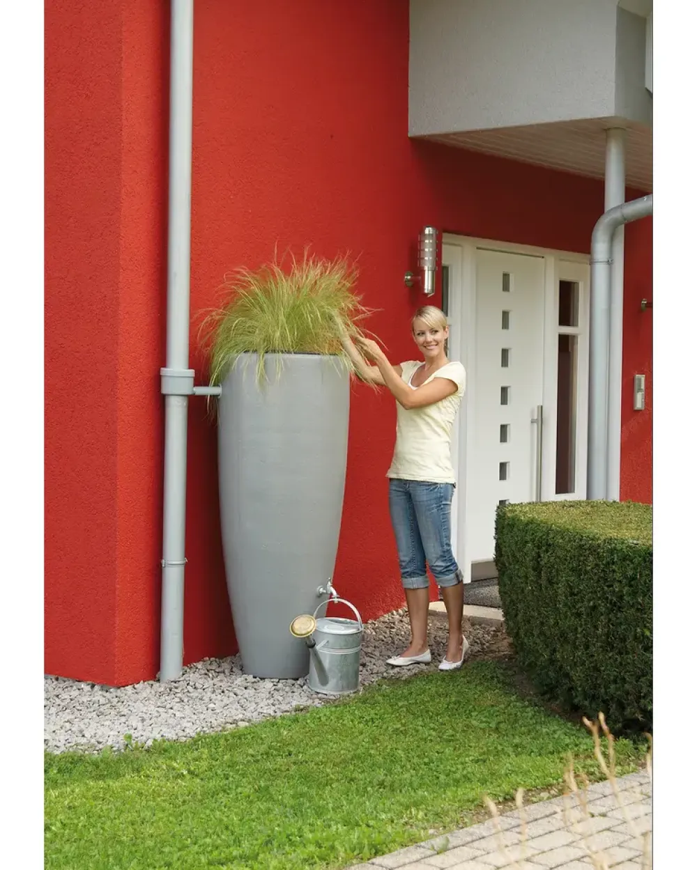 Smart 2-i-1 regnvandstønde med integreret planteskål, der gør, at regnvandstønden kan bruges både til at opsamle vand og som krukke til planter. Regnvandstønden er UV-beskyttet, frostsikret og vejrbestandig.Inkl. 1 x 3/4 indvendigt gevind. Ekskl. tappehane, som kan købes separat.