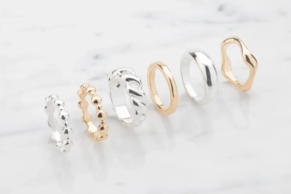 Ring 6 stk. – guld og sølv| Smykker & Hårpynt