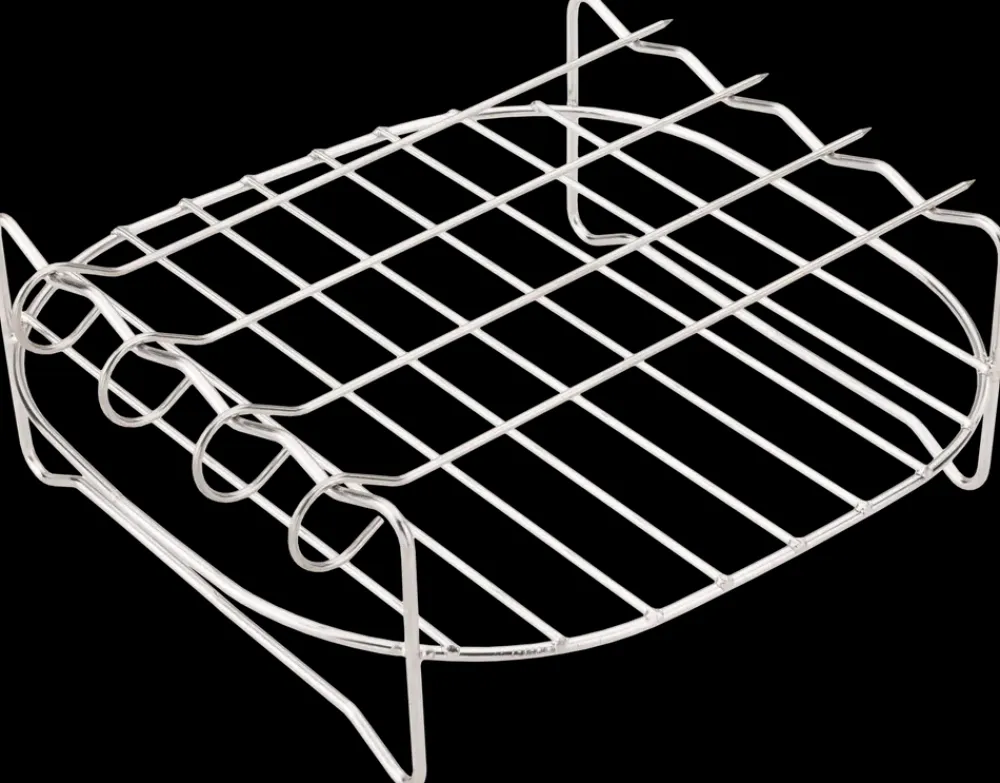 Rist til airfryer i 2 dele i rustfrit stål. Til risten medfølger 4 spyd samt en holder, der kan bruges til både stegt flæsk og toastbrød. Risten kan tåle op til 230°C og er nem at rengøre.Farve: Sølv.Materiale: Rustfrit stålTåler op til 230°C