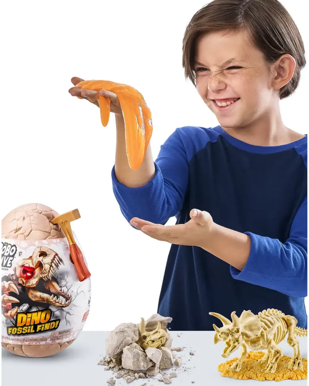 GRAV DIN DINO OP.Grav gennem sten, sand og slim ved hjælp af udgravningsværktøjet for at finde alle Dino Fossil-stykkerne.Model: Assorteret.Bemærk der ikke kan vælges model ved køb i webshop.Ikke egnet for børn under 3 år.ADVARSEL!Fare for kvælning – produktet indeholder små dele, og er ikke egnet til børn under tre år.