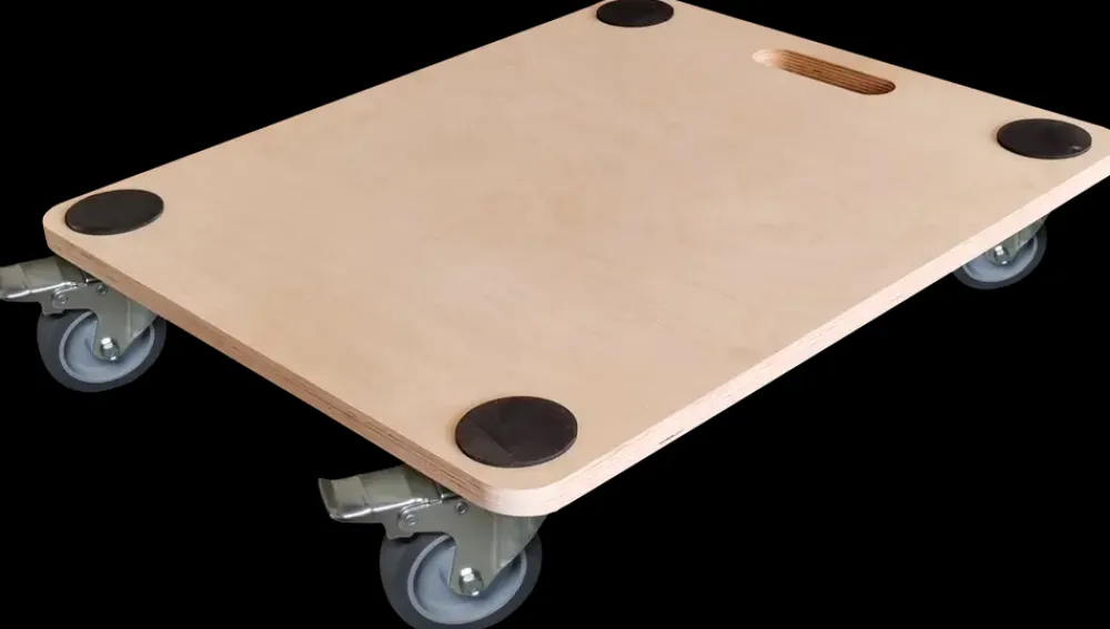 Gør flytningen lettere med en møbelhund. Du kan nemt flytte tunge ting på den store plade med de 4 hjul. Der er bremse på 2 af hjulene.Pladetykkelse: 18 mm. med anti-slipHjulstørrelse: Ø 75 mm.Bemærk: Undlad at bruge møbelhunden på blødt gulv for at modvirke mærker.For at øge holdbarheden af MDF pladen mod fugtpåvirkning, kan denne efterbehandles med f.eks. olie eller maling.