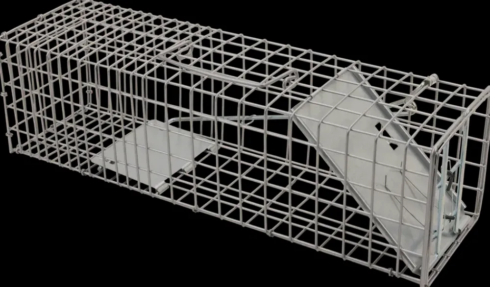 Effektiv rottefælde i trådnet, der fanger rotterne levende.Med lidt lokkemad inde i fælden, vil rotten blive lokket ind og lågen klapper i bag rotten, så den bliver fanget inde i buret.